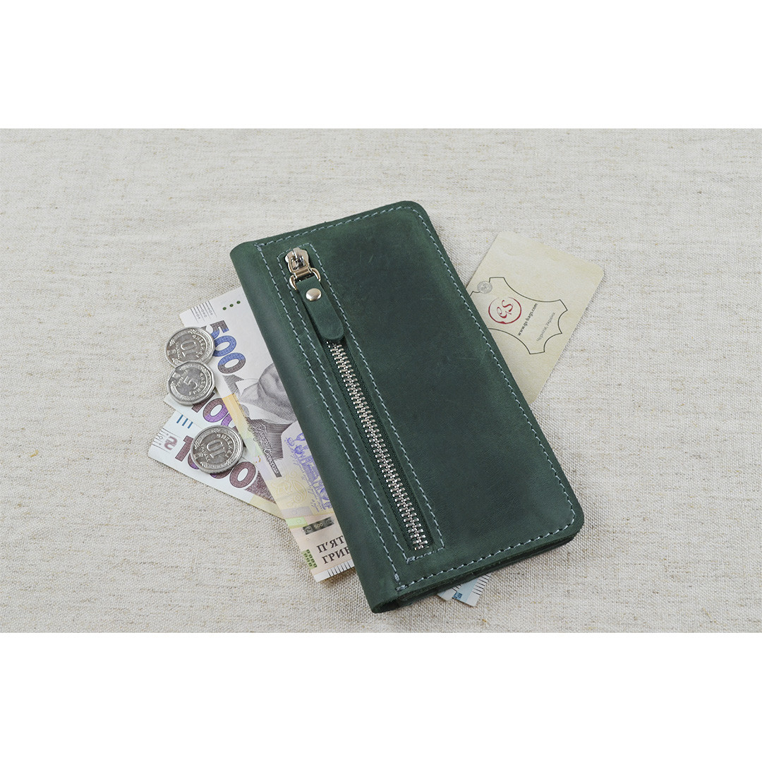Шкіряний жіночий тонкий гаманець , купюрник зеленого кольору.