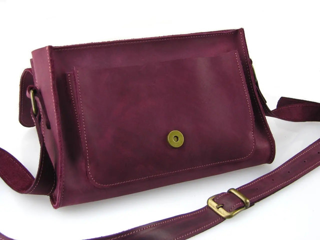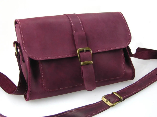шкіряний ремінь через плече регулюється за довжиною пряжкою