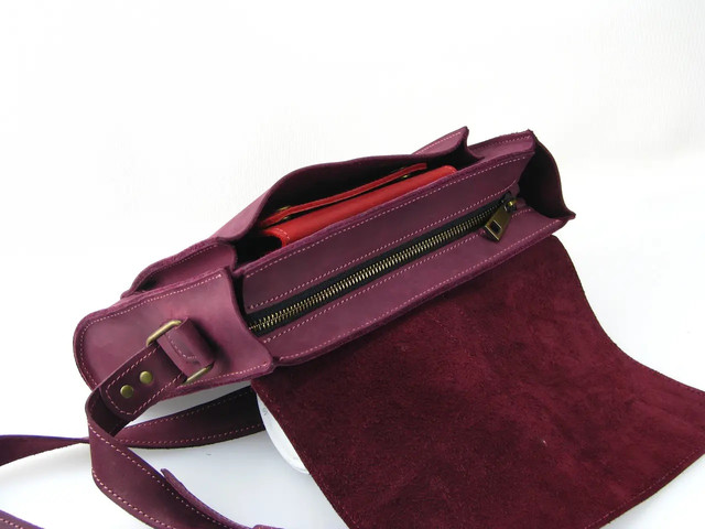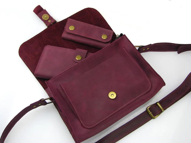 Жіноча шкіряна сумка з ременем через плече, бордового кольору